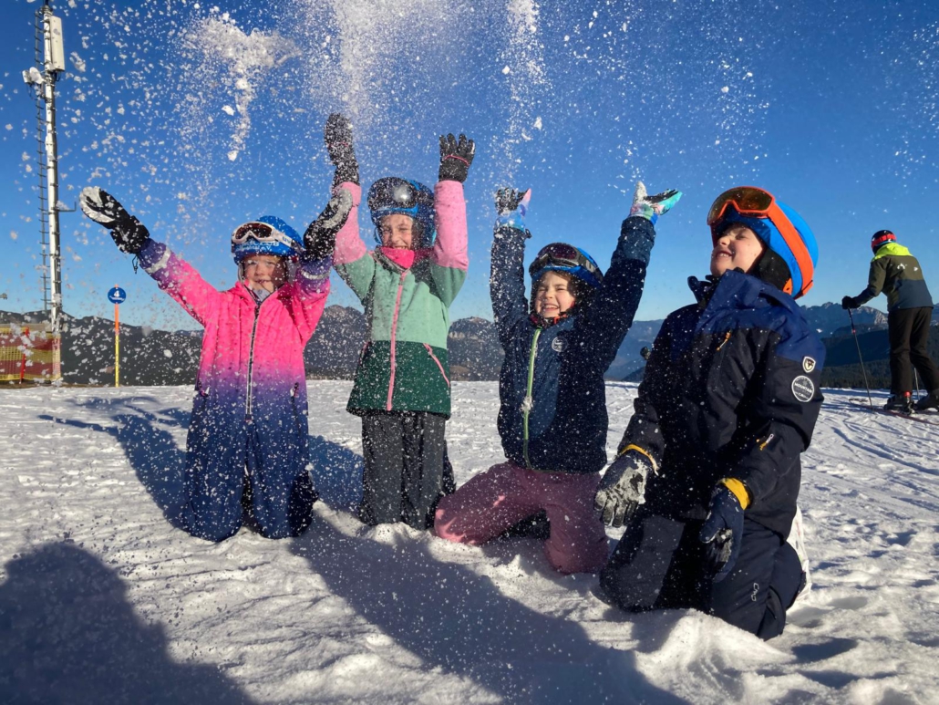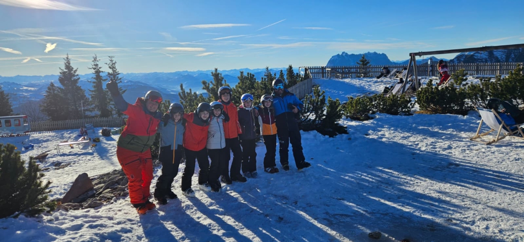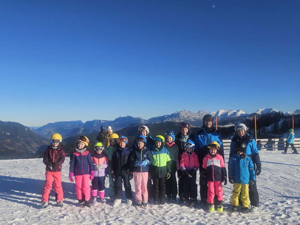 Kaum waren Plätzchen und Festessen verdaut, standen Techniktraining, Sicherheit und Selbstvertrauen auf der Skipiste im Mittelpunkt. Ursprünglich war die Winklmoosalm als Ziel vorgesehen, doch aufgrund fehlender Schneelage wurde kurzfristig umdisponiert. Über den Steinpass ging es zur Liftstation in Waidring und von dort hinauf auf die Steinplatte bis auf den Kammerkör auf 1.659 Metern über NN. Beste Bedingungen erwarteten die Gruppe: Alle Lifte und Pisten waren geöffnet, begleitet von strahlendem Sonnenschein an beiden Tagen nach Weihnachten.
