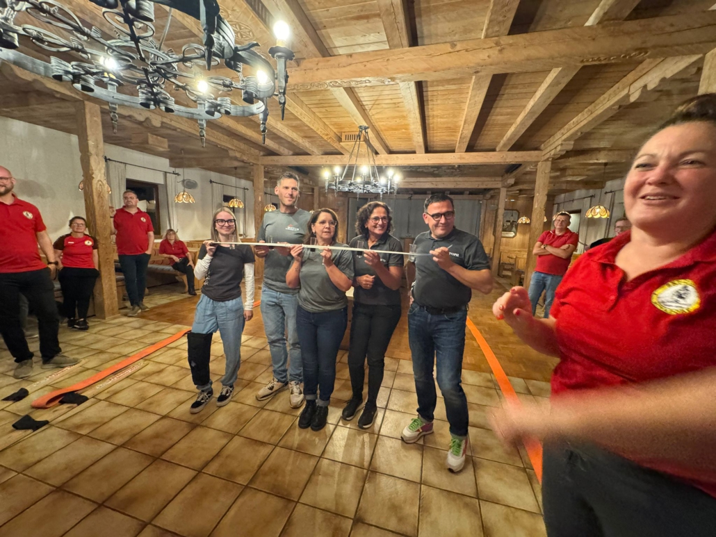 Am 11. Oktober 2025 erfolgte das traditionelle „Patenbitten“ im Vereinslokal Neumeier in Obermünchsdorf. Begleitet von Musiker Thomas Mandl zogen Vorstandschaft und Skilehrer des Skiclub Kollbachtal in den Saal ein, wo die Minadorfer bereits Spalier standen. Mit dabei: ein 30-Liter-Fass Bier als symbolisches Bittgeschenk. Doch bevor es eine Zusage gab, mussten sich die Bittsteller einigen spaßigen Aufgaben stellen – vom Teamskifahren im Gleichschritt über ein kniffliges Ski-Quiz bis hin zu Geschicklichkeitsspielen mit Bierglas und Seilzug. Auch ein „spitzes Holzscheit“ sorgte für Heiterkeit und schmerzhaft-humorvolle Prüfungen.